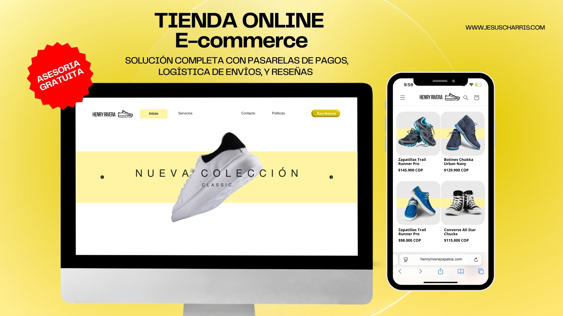 Tienda de calzado urbano con identidad visual high-contrast. Experiencia mobile-first optimizada para el mercado joven.