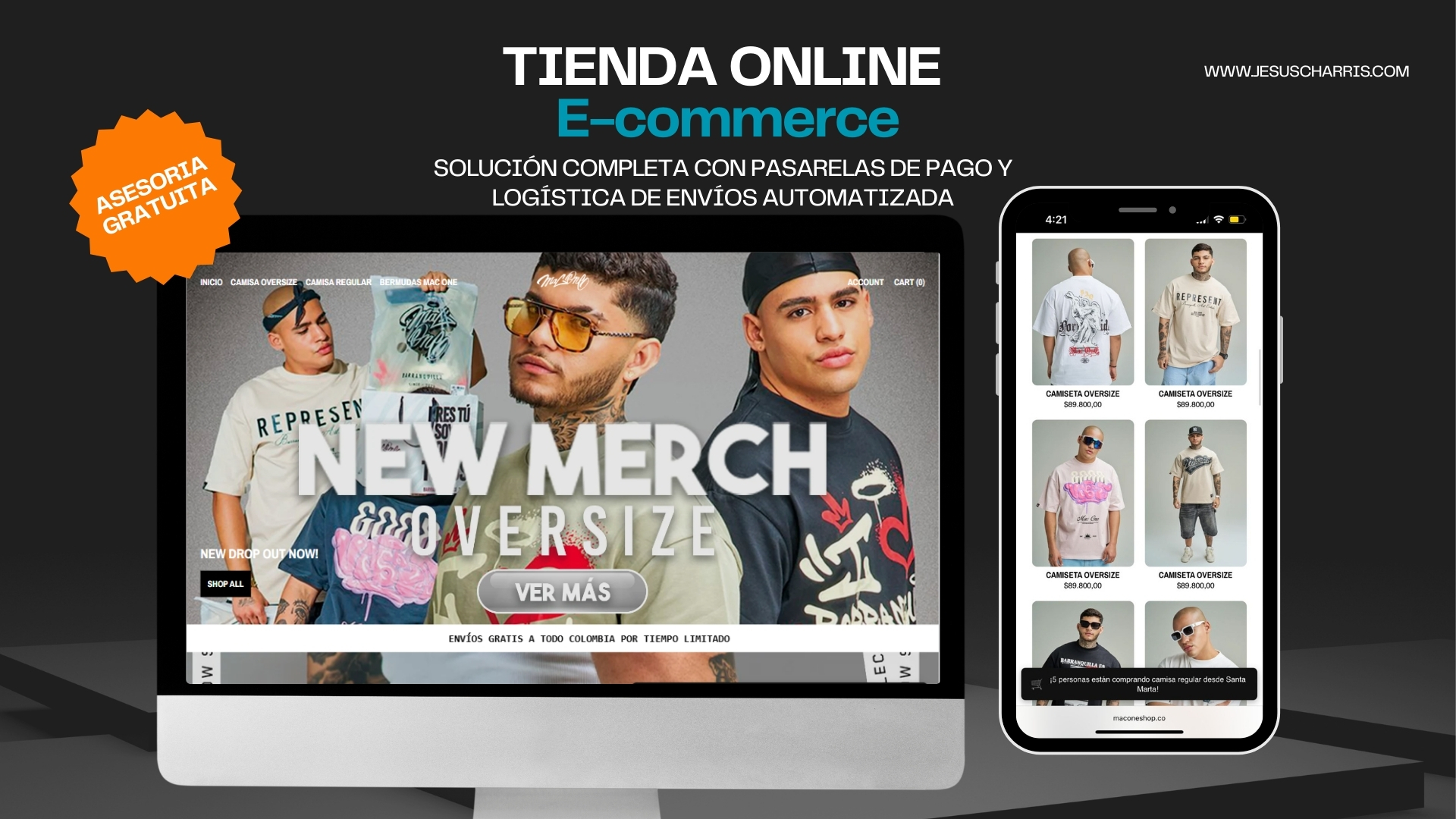 Tienda Shopify de alta conversión con integración COD, recuperación de carritos automática y diseño responsive adaptado a la estética urbana de la marca.