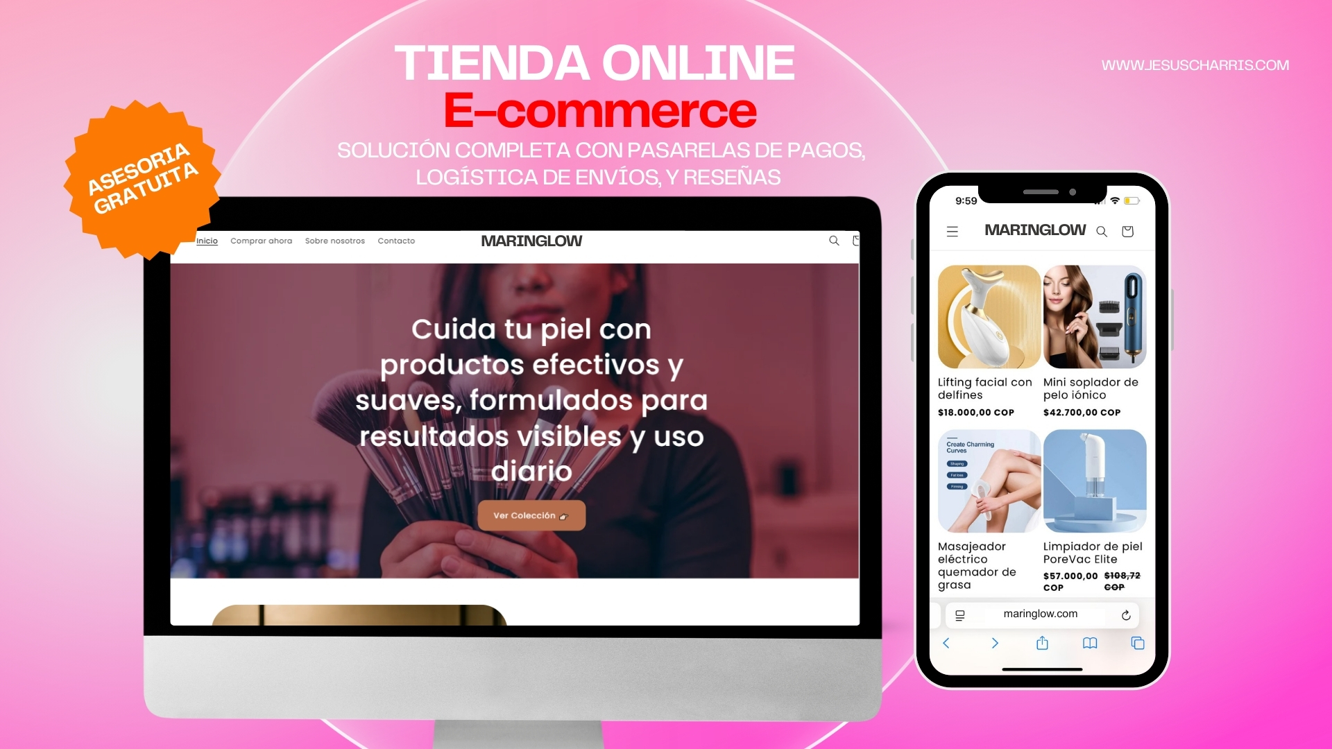 E-commerce de nicho belleza con sistema de reseñas verificadas y pasarelas de pago locales para checkout sin fricción.